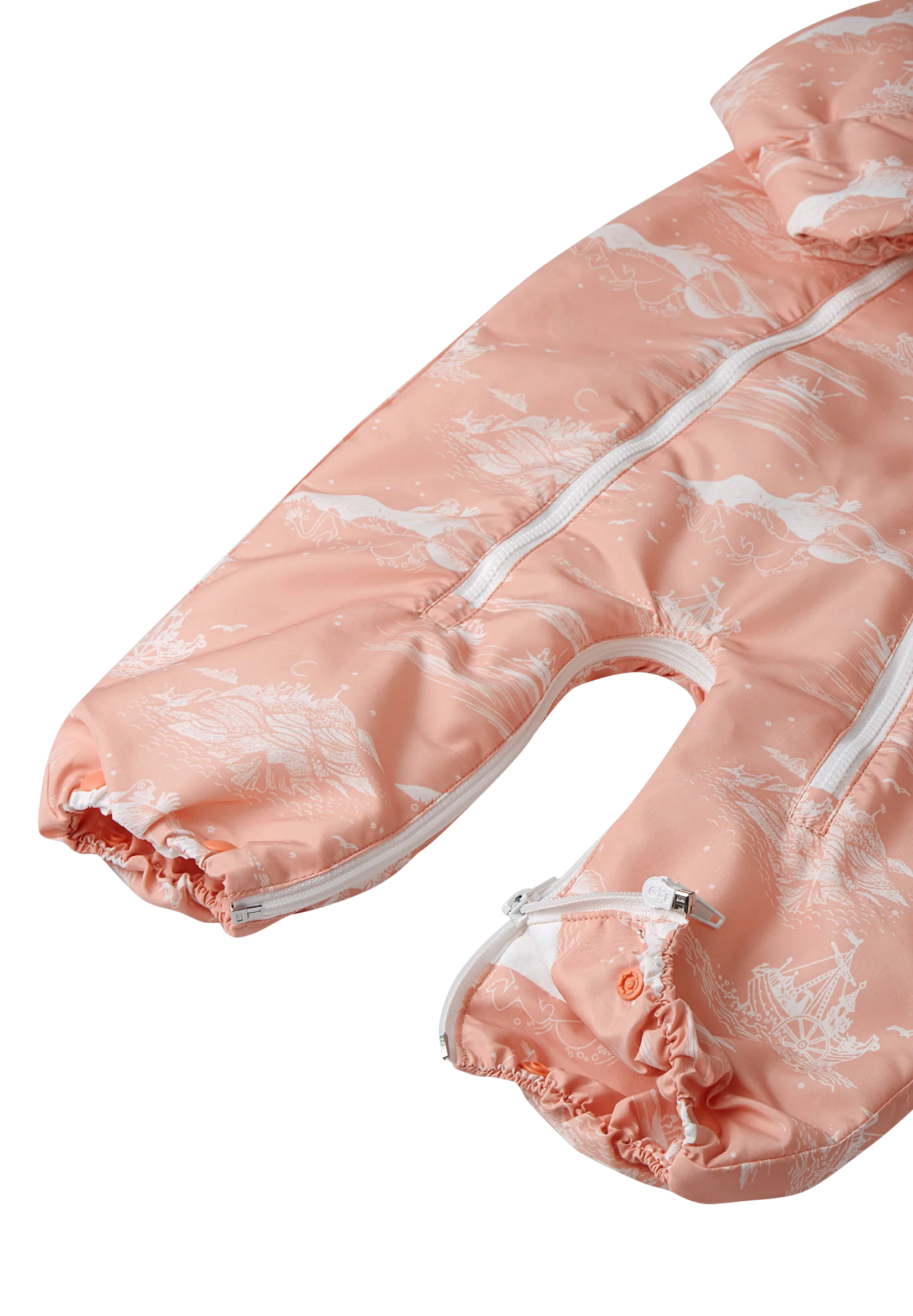 Soft jumpsuit for babies made of recycled materials yet very safe and soft for your baby's skin. Can easily be converted to a sleeping bag. Cute Moomin print. Perfect outer layer for your infant when going for a walk in the stroller.